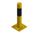 Słupek ochronny oznakowany czarnym pasem taśmy. Zabezpieczenia starannie wyprodukowane ze stali z dbałością o szczegóły i estetykę, powierzchnia pomalowana proszkowo na kolor żółty (RAL1021). Bariery przykręcane są bezpośrednio do podłoża. Wykorzystywane są do rozgraniczania ciągów komunikacyjnych, zabezpieczania regałów magazynowych, maszyn, urządzeń, przedmiotów, linii produkcyjnych, elementów konstrukcyjnych (filarów, ścian),